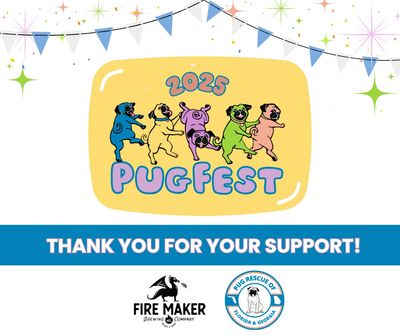 We are incredibly grateful to everyone who attended, volunteered, donated, sponsored, or supported PugFest this year. Your enthusiasm and generosity help us continue our mission of providing medical care, safety, and second chances to pugs in need.